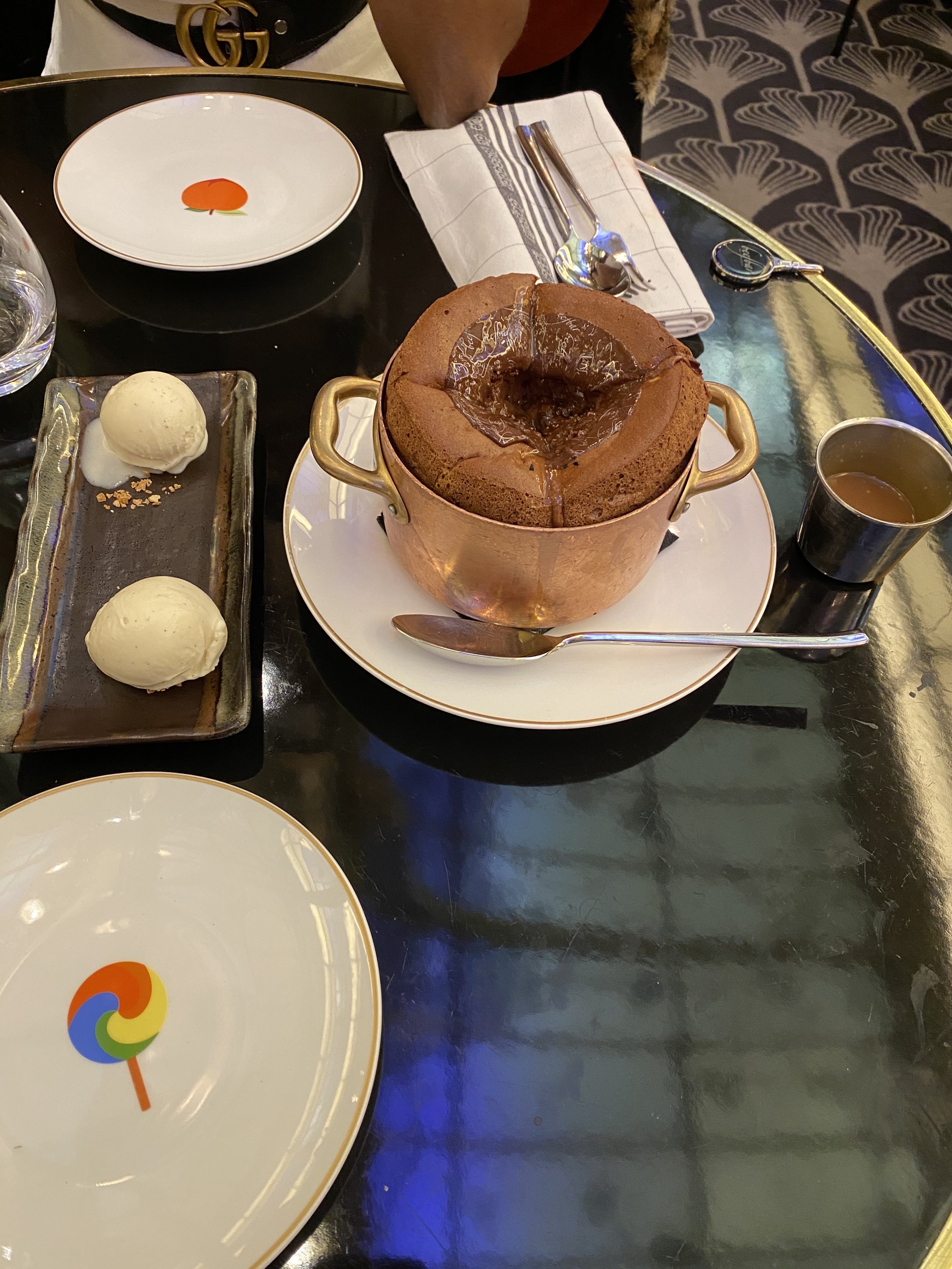 Très sûrcoté. On s'attend à une expérience de luxe vue les prix mais c'était pas du tout à la hauteur. La présentation des plats et le goût ne sont pas du tout en cohérence avec les prix et sont très moyens. Les plats sont pas terribles. Je comprends pas la hype. Si vous voulez une expérience de luxe de qualité ce n'est pas le bon endroit à Paris. Service était bon, ça rattrapait un peu.