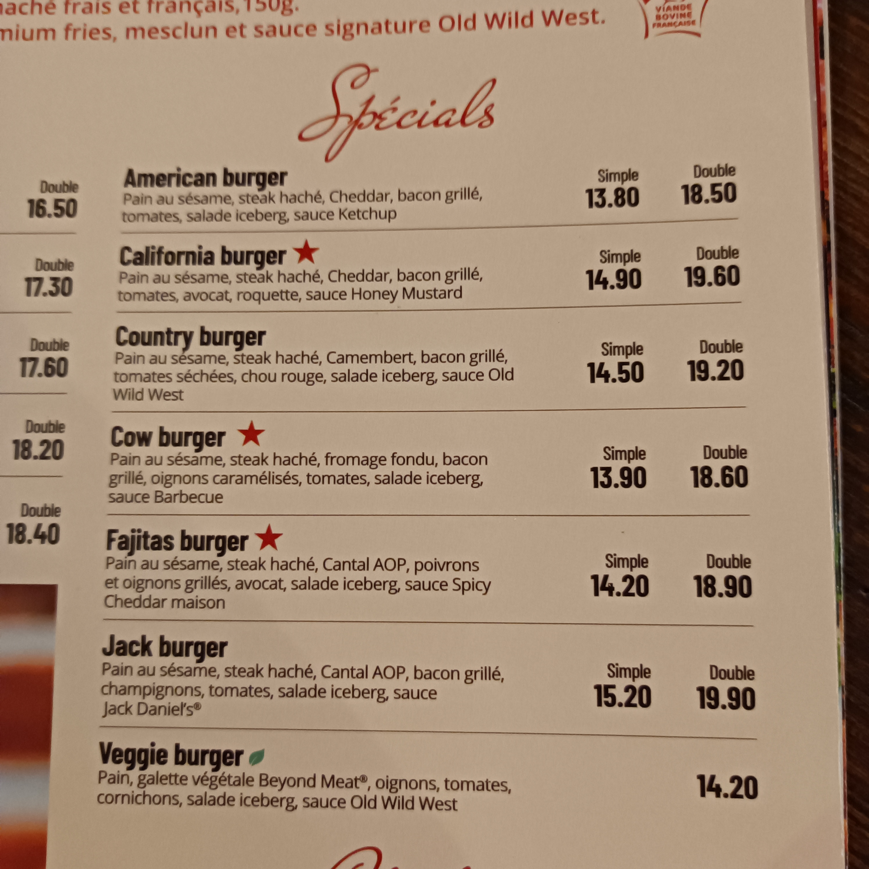 L'équipe est ravie d'avoir pu vous satisfaire pendant votre visite Chantal ! N'hésitez pas à nous en dire plus sur votre expérience en commentaire. L'équipe Old Wild West Le Havre 🍔🙂😀. A très vite !