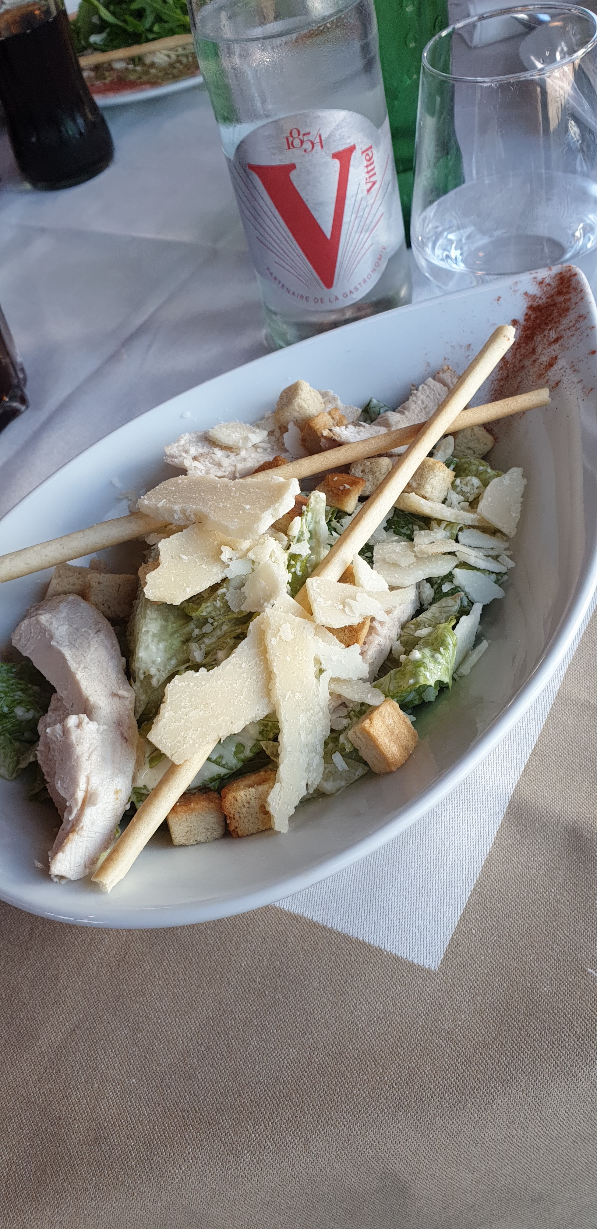 Service nickel, serveur sympa, mais excusez-moi, la salade César a 28 euros à fuir. Vous allez recevoir 1 vieux morceau de poulet au milieu d’un champs de salades. Il y’a juste de la salade et du poulet pour 28 euros un délire ! Je vais chez le carrefour de chez moi pour le même pris je m’en fait 50.