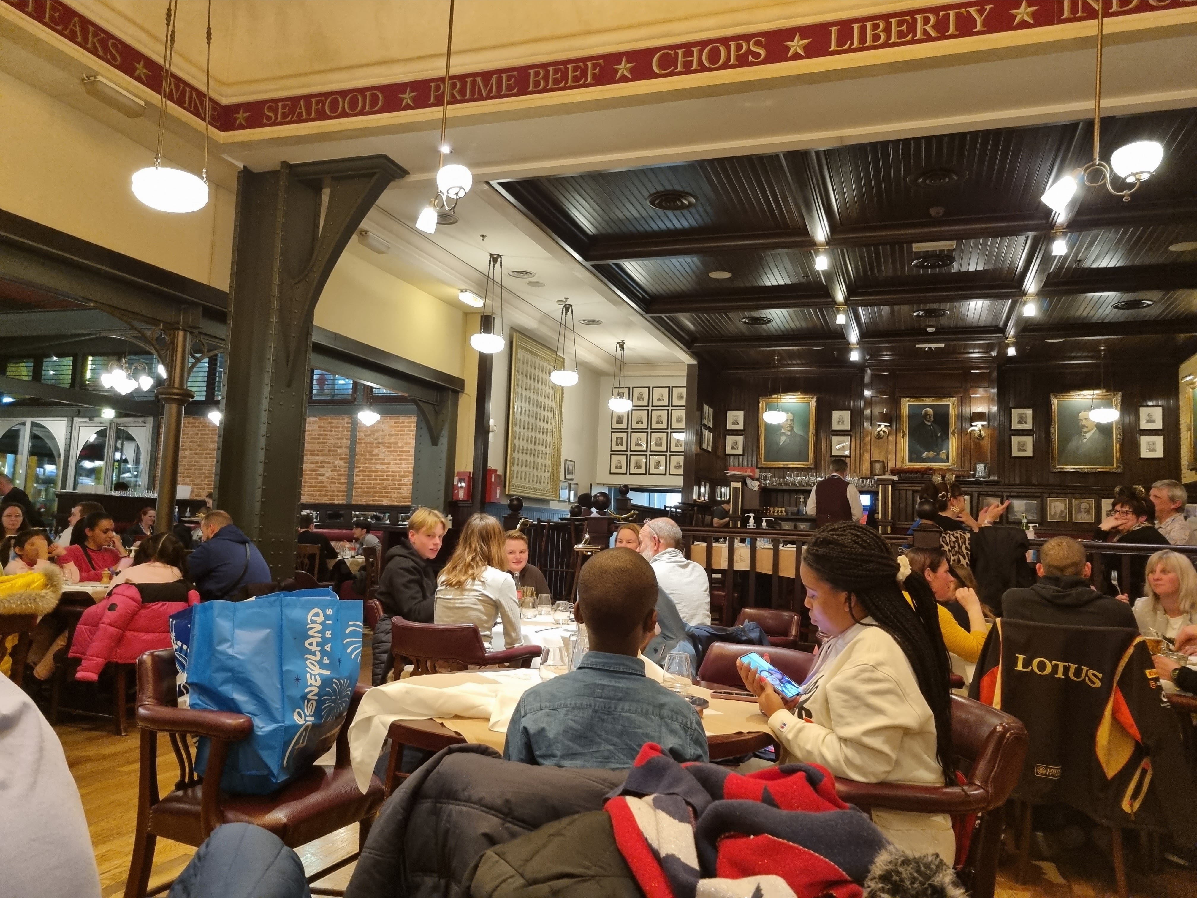 Posté le 14/02/2020 à 20:12"Situé dans Disney Village, The Steakhouse vous plonge dans l'ambiance Chicago des années 1920. Le décor est raffiné avec de nombreuses boiseries et tableaux. Côté nourriture, j'ai opté pour le Crab Cake aux épices Cajun, pinces de crabe en tempura salade de roquette et sauce Tartare puis en plat pour le Filet de boeuf sauce au poivre et en dessert le Chicago Sundae Crèmes glacée. Je peux vous dire que vous en avez pour votre argent. Un très bon restaurant à faire en famille !"